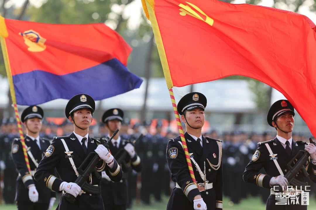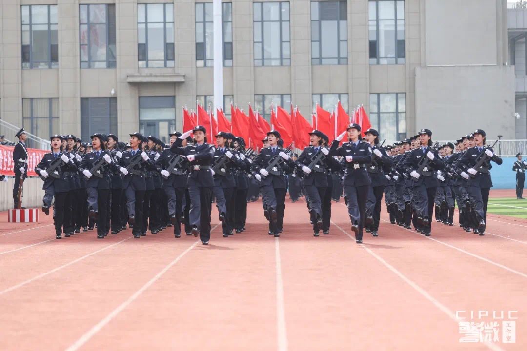 警务训练汇报大会上,旗帜方阵、警徽方阵、持枪方阵等受阅方阵依次接受检阅。同学们警容严整、神采飞扬、步伐铿锵、口号嘹亮,体现了新生优秀的队列素养,展现了昂扬向上的精神风貌。