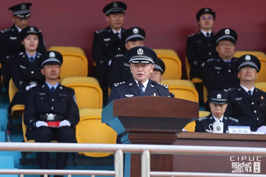 党委副书记、院长王册在致辞中向全体2025级新同学表示热烈欢迎,向部队首长和教官表示衷心感谢,向家长们表示崇高敬意。王册院长指出,今年是中国人民抗日战争暨世界反法西斯战争胜利80周年。在这样特殊的历史节点上,在沈阳这片最早发起抗战的热土上,我们必须铭记历史、缅怀先烈。回望刑警学院所走过的峥嵘岁月,1948年5月,伴随着东北解放的隆隆炮声,肩负着捍卫革命胜利果实、保卫红色初生政权的历史使命,刑警学院的前身——东北公安训练队应运而生,一大批在抗日战争以及解放战争的烽火硝烟中走来的先辈们,合力点燃了新中国公安教育的火种。77年来,一代又一代警院人与党和国家同呼吸、共命运,始终敢为人先、勇立潮头、铸剑报国,创造了公安教育史上多个“第一”和“唯一”,用实际行动擦亮了“中国刑警的最高学府”的闪耀荣光。