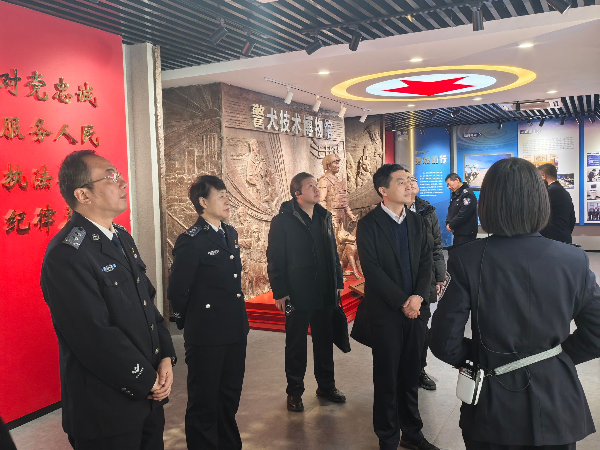 在校期间,调研组参观了学校校史博物馆、警犬技术博物馆、反电信网络诈骗训练中心和辽宁省禁毒技术重点实验室。