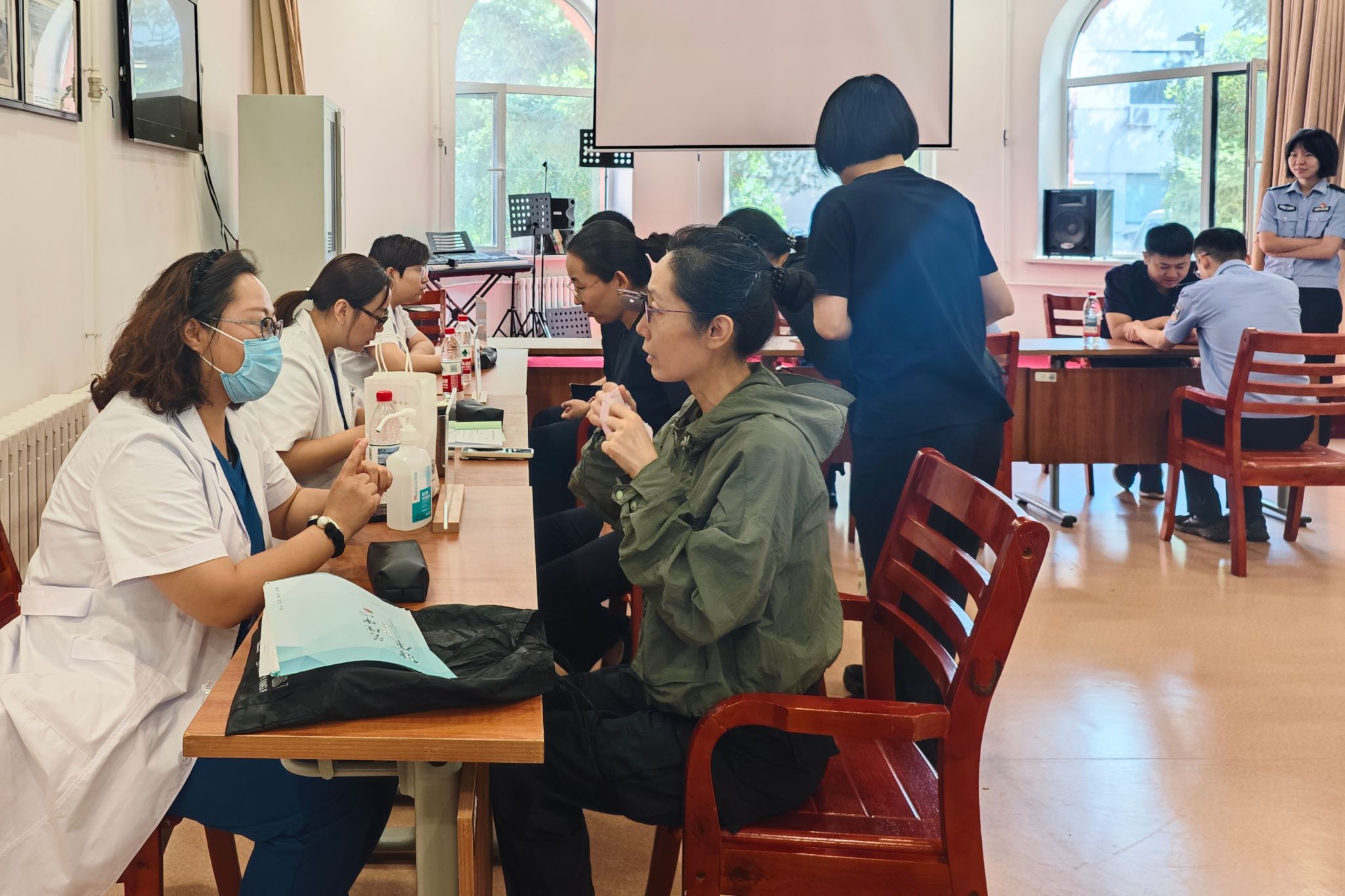 活动中,多科室资深医师提供专业咨询,解答健康疑问,同步开展血压血氧检测、中医体质辨识、个人体检单解读、发放养生茶饮与科普手册、中医推拿体验、针灸咨询等特色服务,得到广大教职工一致好评。推拿康复师还针对教师常见的颈椎病、腰椎间盘突出、肩周炎、腰肌劳损等问题,提供专业的手法检查、推拿按摩、正骨调理体验,现场缓解肌肉紧张和疼痛。