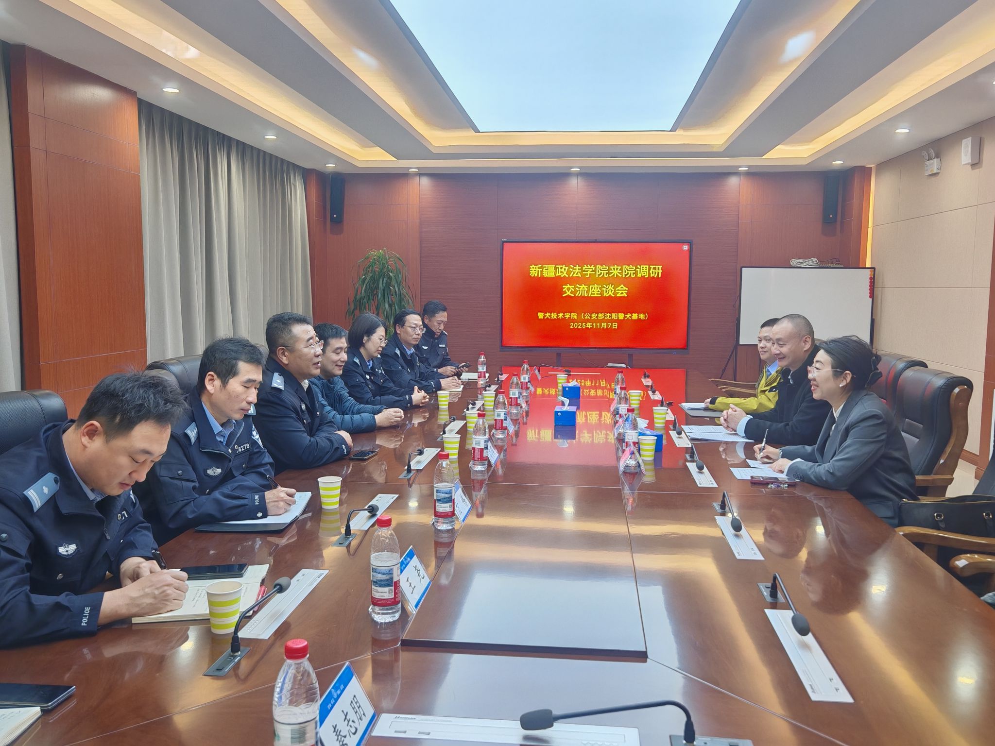 11月7日,新疆政法学院司法警官学院党委书记王新德一行3人来到我校警犬技术学院(公安部沈阳警犬基地)就警犬技术专业人才培养等相关工作开展调研。教务处副处长张奎斌、警犬技术学院副院长闫传国与王新德书记一行举行了座谈,侦查与反恐怖学院及警犬技术学院相关教师参加了座谈。