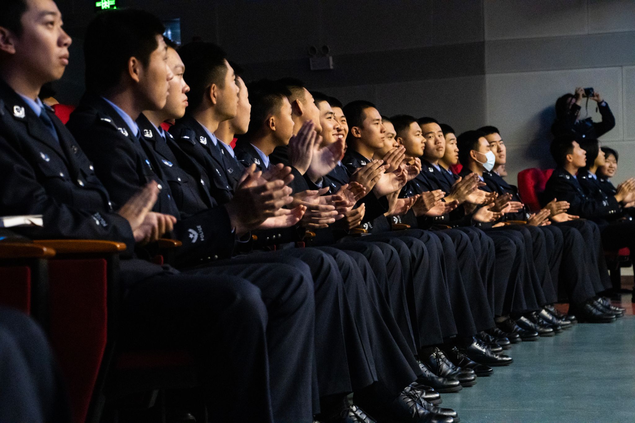 音乐会以《没有共产党就没有新中国》拉开序幕,铿锵的节奏如时代鼓点,激昂的旋律似热血涌动为音乐会写下庄重开篇。随后,《中国军魂》《红色娘子军》《我和我的祖国》等经典红色歌曲接连上演,重温中华民族的壮阔征程。灯光渐柔,《童年》《海阔天空》唤醒共同成长记忆,让严肃的警营文化与鲜活青春气息巧妙交融。音乐会终章,《中国人民警察警歌》和《少年壮志不言愁》相继奏响。“金色盾牌,热血铸就”的铿锵旋律响彻礼堂,预备警官们将“人民公安为人民”的初心镌刻心底,让“光荣使命”化为具象情感认同。