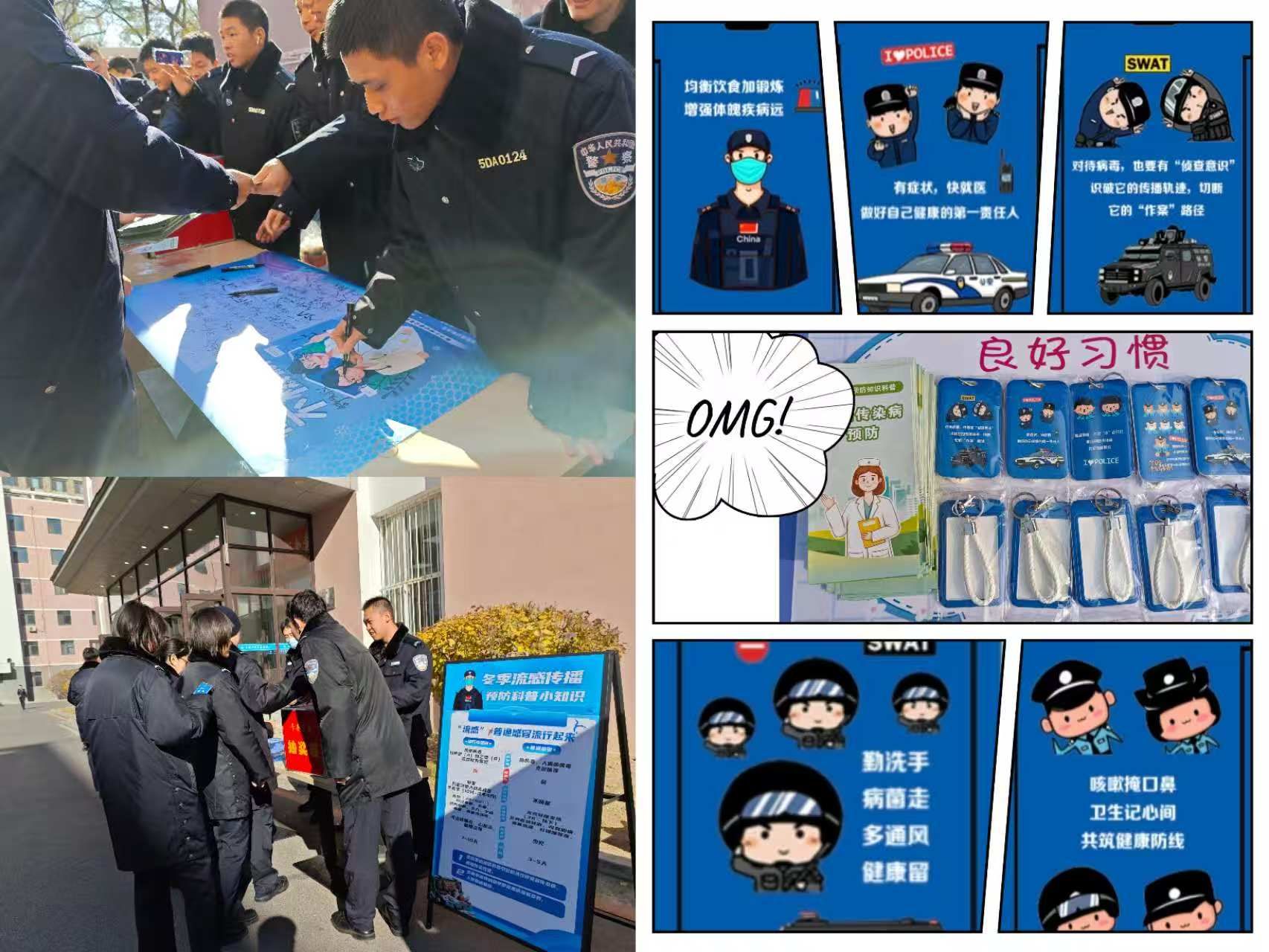 活动现场气氛热烈,校医院医务人员为往来师生作了专业的传染病防治知识宣讲,并发放了科普宣传手册,帮助师生科学认识并预防秋冬季常见疾病。为进一步提升活动的趣味性与参与感,本次活动特别设置了“健康宣言”互动环节。师生们在活动展板上踊跃写下自己的健康承诺后,即可参与“健康警院卡套盲盒”抽奖。奖箱内备有五种不同款式的精美卡套,每一枚都印有实用的传染病预防标语,让健康知识伴随师生日常的学习生活。这种寓教于乐的形式深受欢迎,吸引了大量师生驻足参与。