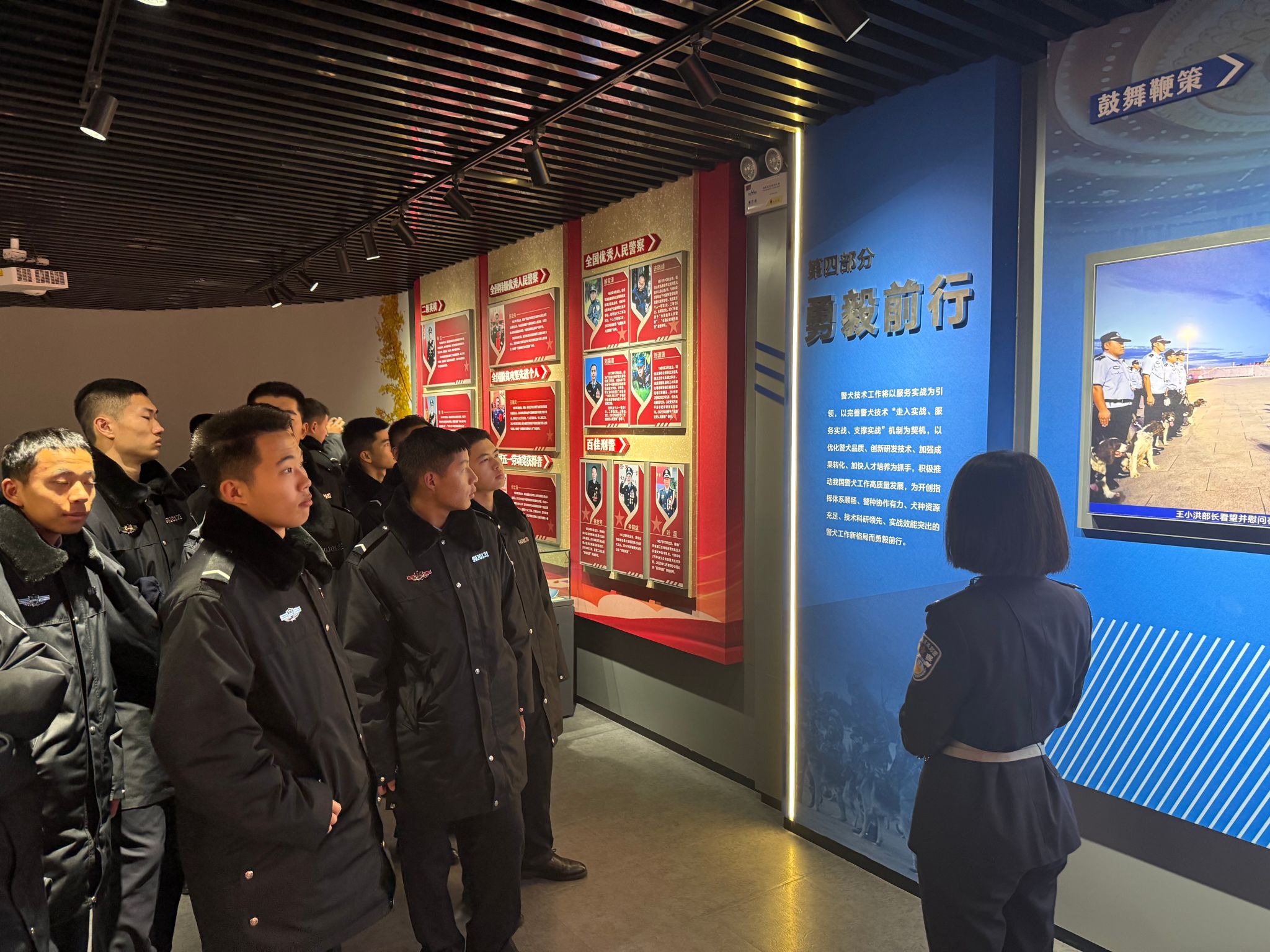 活动中,各区分队有序前往警犬区、博物馆与教学楼进行参观。警犬基地内,同学们对训练有素的警犬表现出浓厚兴趣,现场互动频频;警犬博物馆中,大家凝神聆听讲解,在一件件展品中感受警犬技术学院的发展历程与奉献精神所凝成的文化底蕴;教学楼的教室内,叠被示范活动由三位同学协作,现场传授叠被技巧,细致讲解、手把手教学示范。本次活动还邀请了2023、2024级国家奖学金获得者与内务标兵,他们分别围绕学习方法、生涯规划,以及内务整理心得等内容展开分享。言语间真情流露,让新生们深刻体会到警犬技术学院这个大家庭中无处不在的关怀与温暖。这场沉浸式体验,既让新生掌握专业相关知识,更提升了专业认同与兴趣。活动最后,警犬技术学院党委副书记林鑫围绕入学教育主题,为新生的学业发展指明方向,并对同学们的日常学习、行为规范与生活表现提出了明确要求。