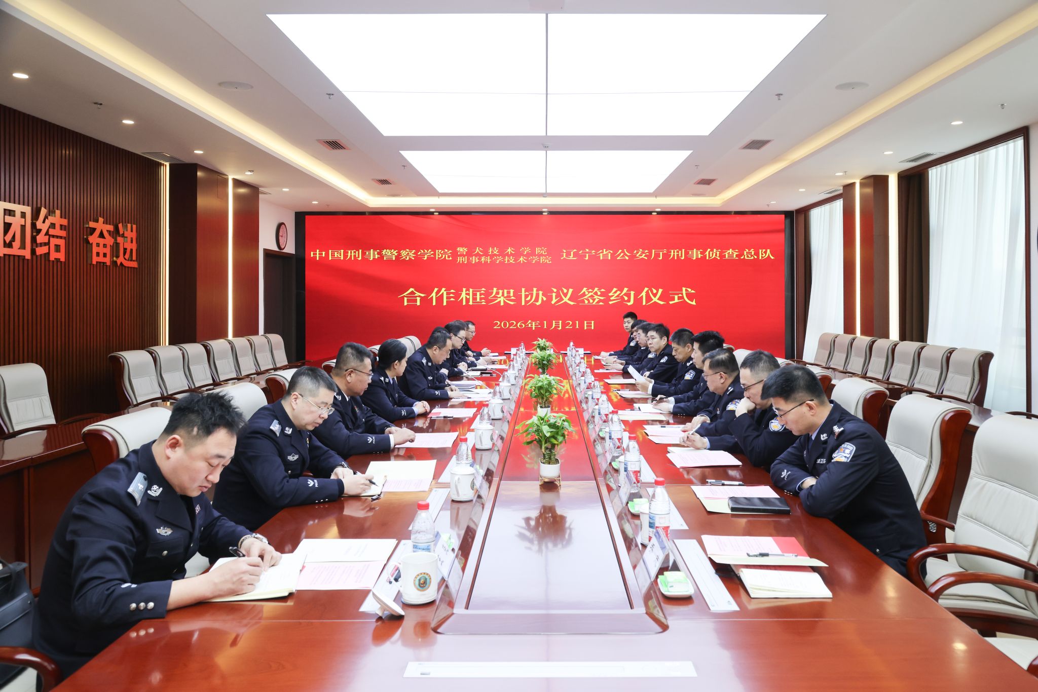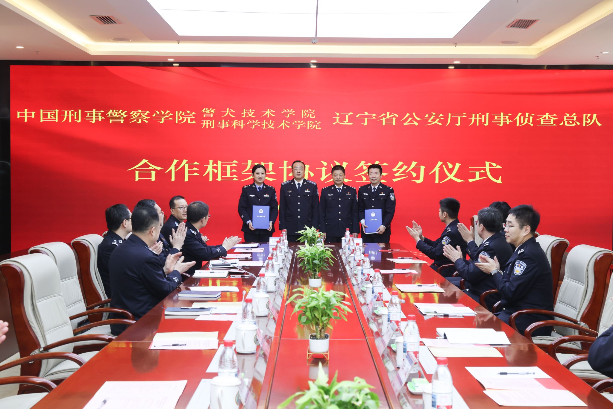 随后,在双方领导的见证下,警犬技术学院、刑事科学技术学院分别与辽宁省公安厅刑事侦查总队签署了战略合作框架协议。