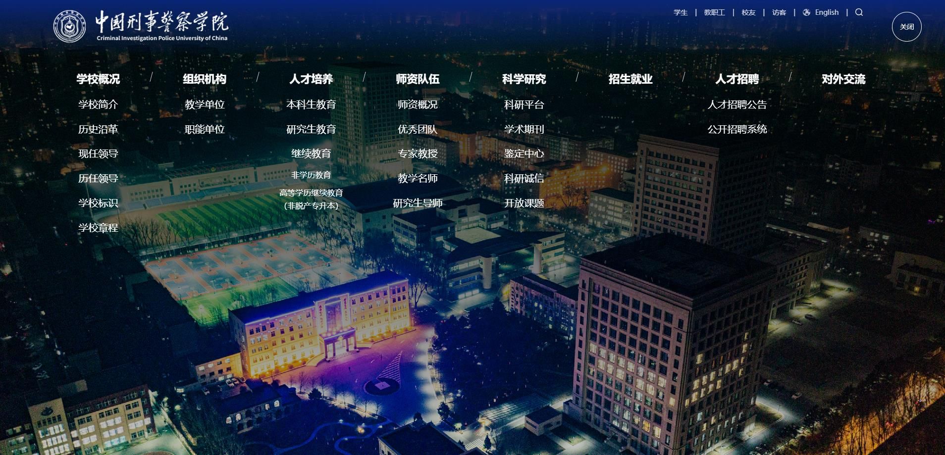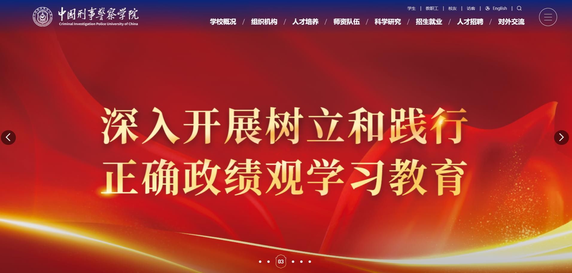 网站页面整体采用长滚式布局,分为6个全屏展示,以“中国红”“警察蓝”为主色调,融入校徽、校园建筑、辅助图形等元素,彰显刑警学院文化特色。BANNER图以全屏方式展示,新增动态视频功能,高清大图与动态视频交替轮播。各个板块增加轻微悬浮偏移效果,网页过渡更自然。