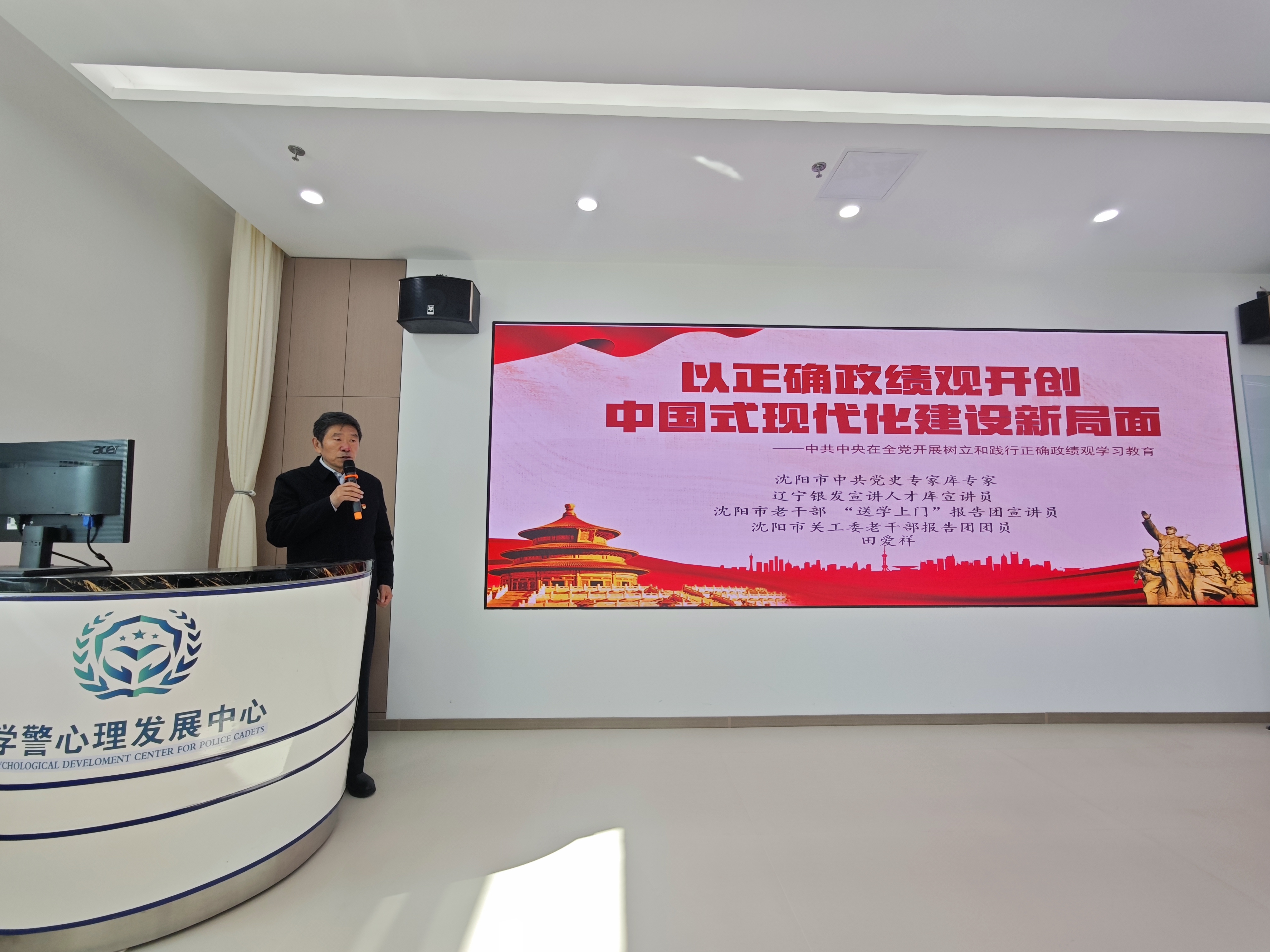 为深入贯彻公安部党委工作部署和学校实施方案,引导团干部树立和践行正确政绩观,4月7日,校团委邀请沈阳市中共党史专家库专家、沈阳市政府驻京办原副主任田爱祥为团干部作树立和践行正确政绩观学习教育辅导报告,学校团干部参加学习,校学生会、校研究生会主席团成员列席旁听。