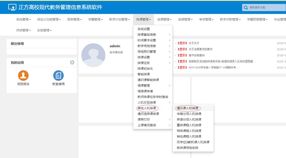 进入【排课管理】-【其他人机排课】-【通识课人机排课】