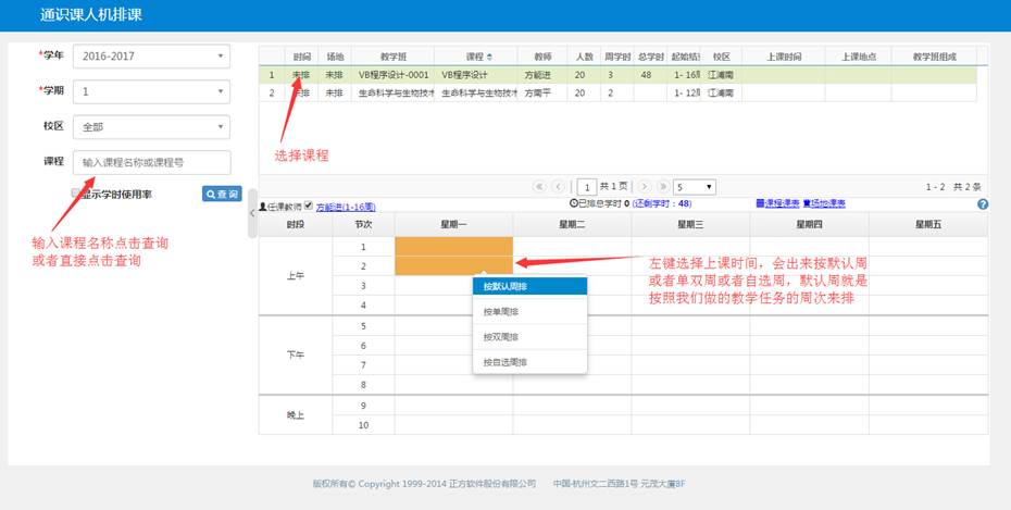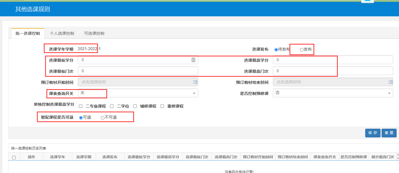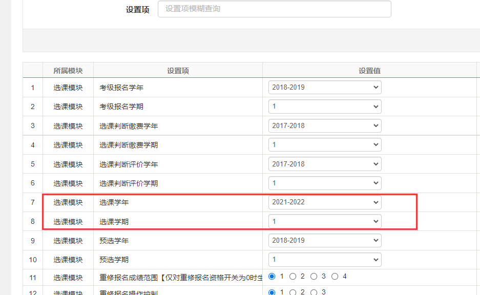 a.选课设置:选课学年学期设置。