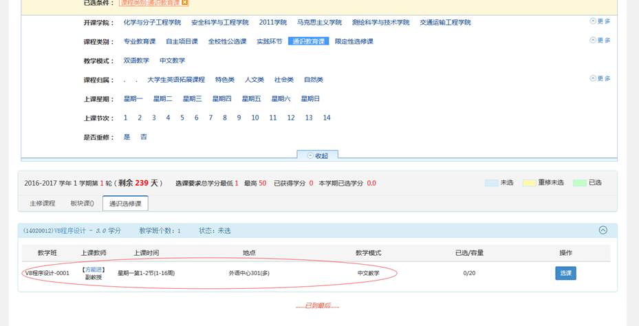 9.最后教务处把选课时间等放开,学生登录系统就可以进行选课了。下图是学生登录系统看到的公选课