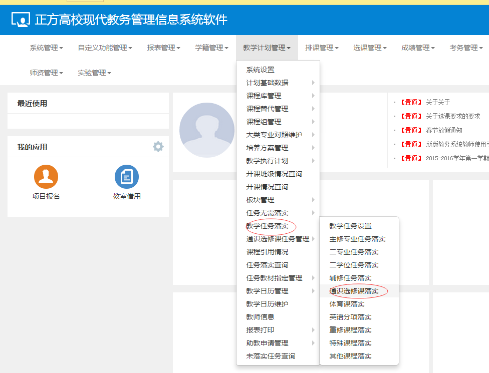 进入【教学计划管理】-【教学任务落实】-【通识选修课落实】