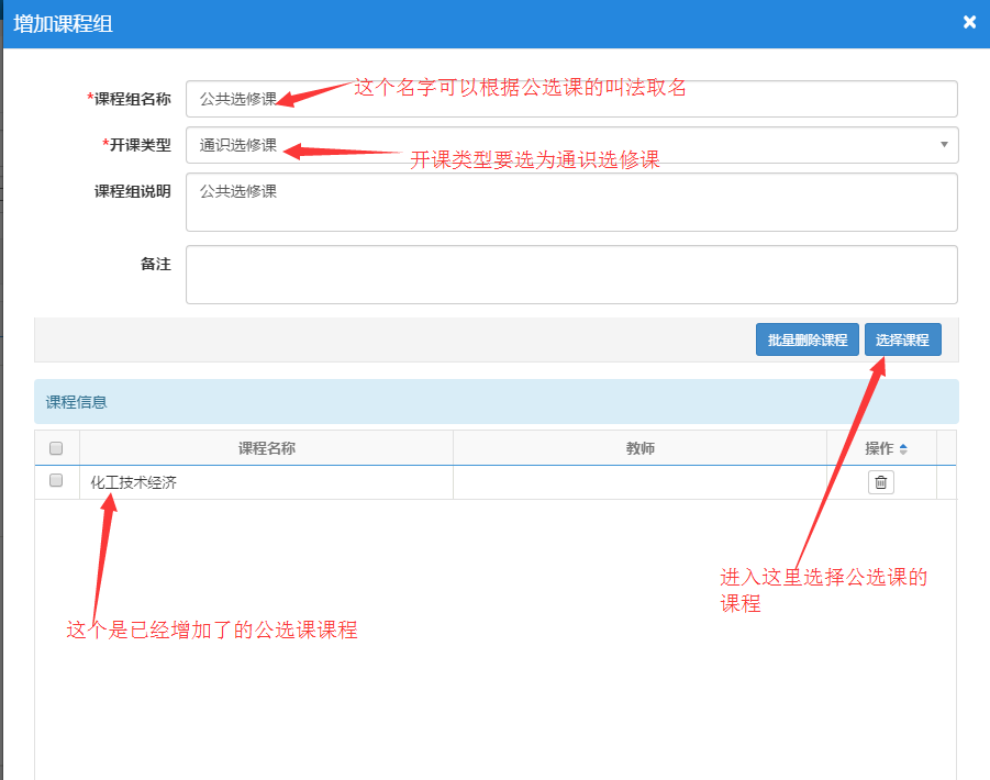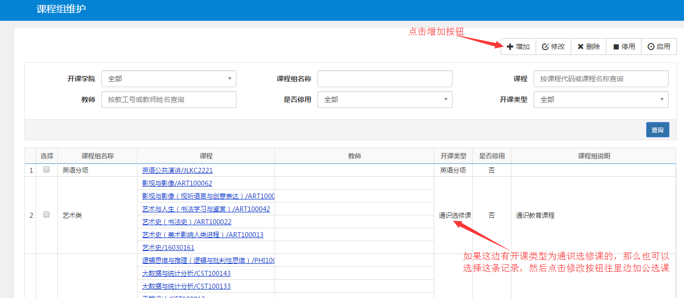2.如果开课类型有通识选修课了,可以选择这条记录进行修改。